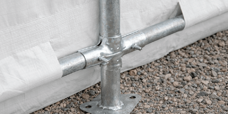 Emma does her best to protect them, moving trays back and forth, trying to stay one step ahead. A month ago, she stopped chasing the weather. Her husband offered her a compact 6ft shelter that they set up in the corner of the yard together. It’s a simple structure, with slanted feet, and thick 20 BWG steel tubes that hold fast. It does a great job at protecting her tools and plants from the rain and harsh UV rays from the sun.